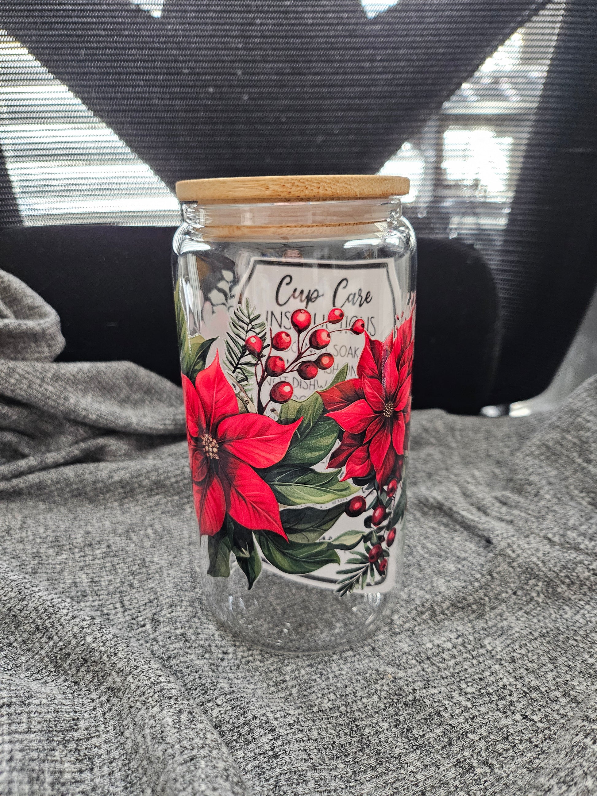 The Poinsettia Glass Tumbler is a beautiful festive drinkware option that showcases the iconic poinsettia plant, commonly associated with Christmas decorations. Often featuring vibrant red and green colors, this tumbler is perfect for serving holiday beverages such as mulled wine, eggnog, or even refreshing cold drinks during holiday gatherings. Its elegant design not only adds a seasonal touch to your tablescape, but it also makes for a lovely gift or keepsake, celebrating the beauty of the holidays while providing a functional and stylish drinking option.